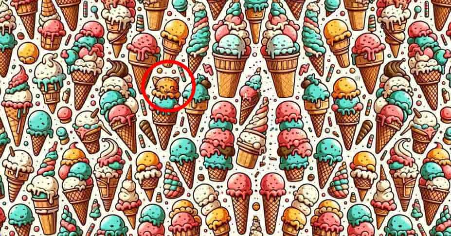 Optical Illusion Eye Test: Find Cat among Ice Cream Cones in 7 Seconds