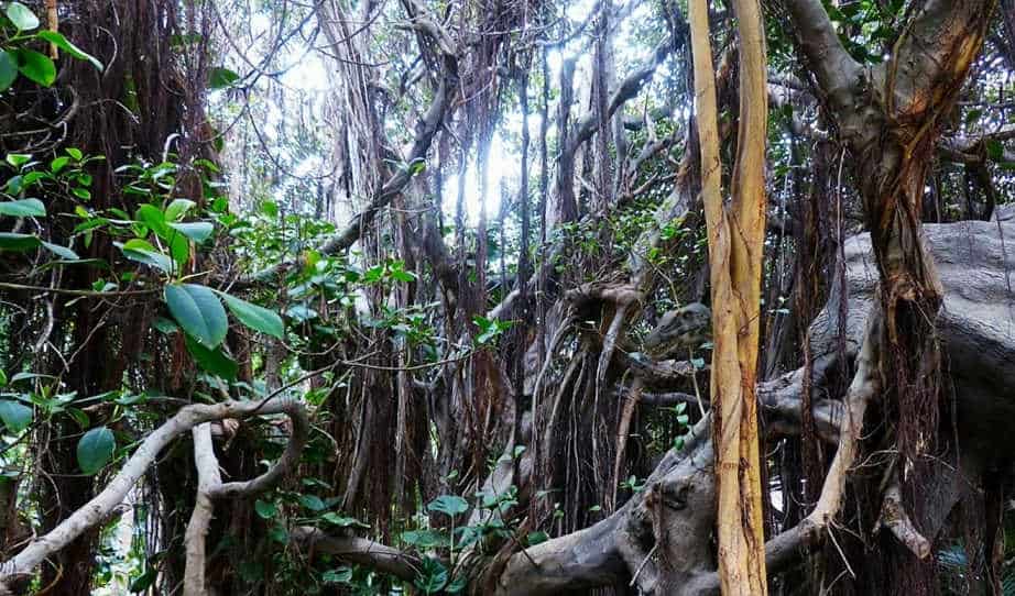 In the image shared above, you can see a forest where high trees with deep roots can be seen.