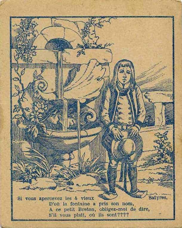 In this image shared above, a garden scene is depicted where a guy is seen standing near a fountain in the garden; the fountain is surrounded by creepers, and hidden within the garden are four faces.