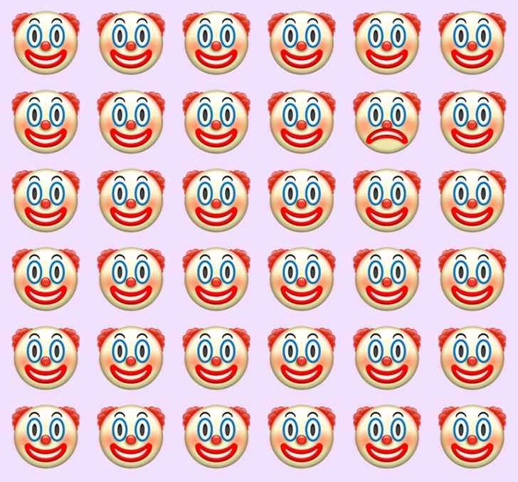 The challenge for the readers is to spot that sad emoji in 4 seconds.