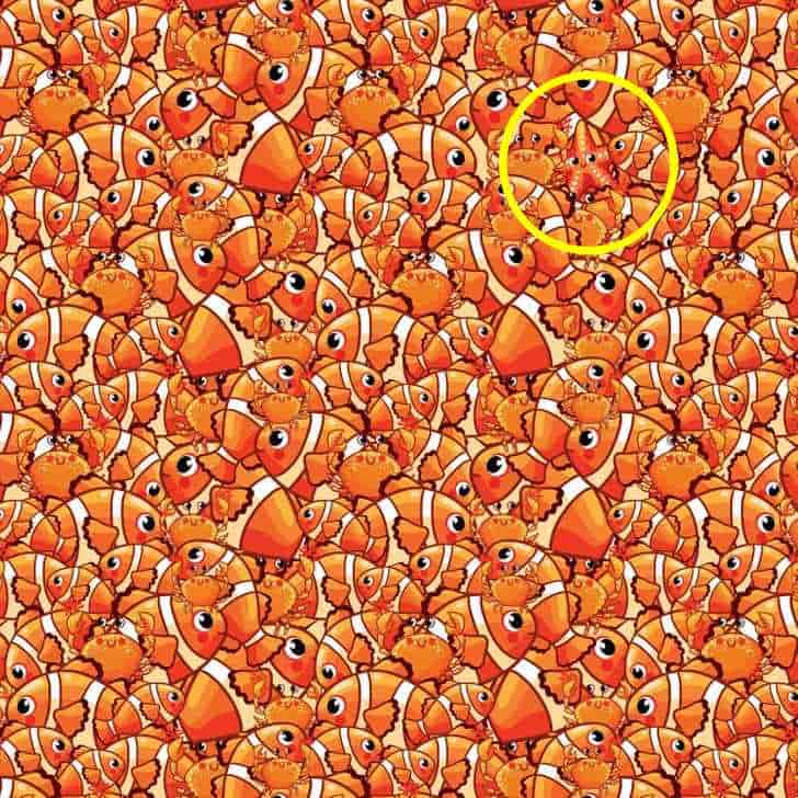 There is a starfish hiding somewhere among them, and the challenge is to find it in 9 seconds.