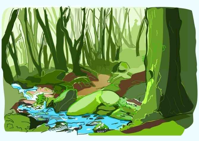 In the image shared above, a forest scene is presented before the readers in the form of a painting.