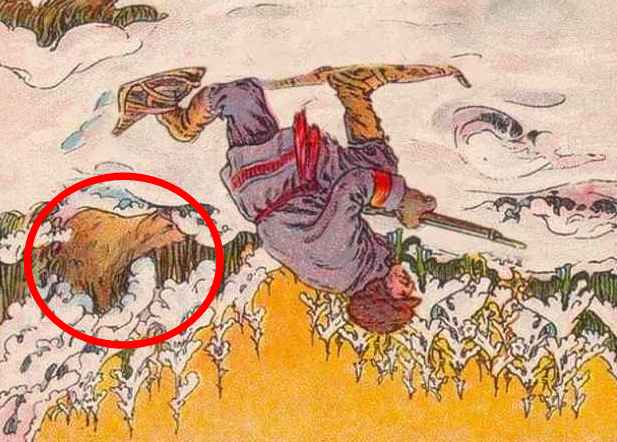 The bear can be spotted on the right side of the picture; it becomes visible if you tilt the image 180 degrees to the right.
