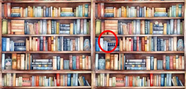 Many optical illusion images are designed by blending objects, colours, etc. These elements are strategically arranged to create deceptive effects, making hidden details appear or disappear. One such optical illusion is presented here, where the readers are asked to spot a hidden key in the bookshelf in 7 seconds.