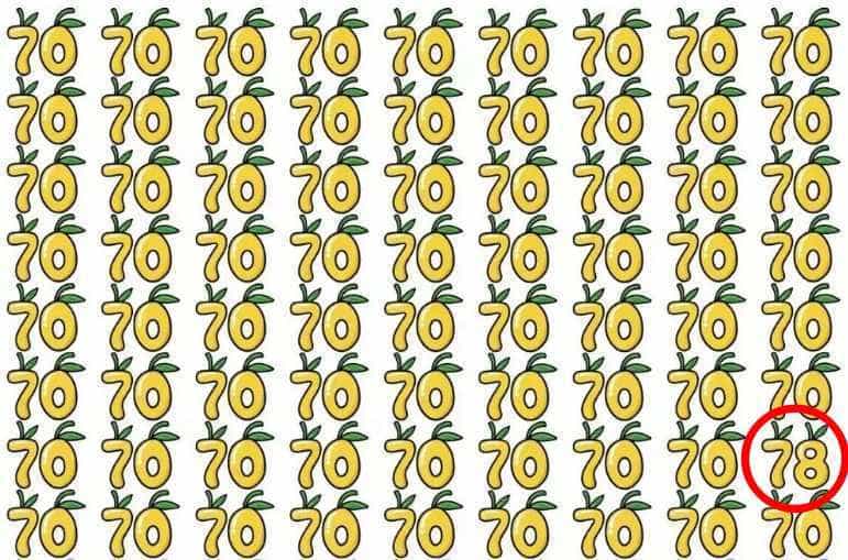In this image shared above, a group of number 70 is seen. Hiding in plain sight in the picture is the number 78. Can you spot the number in 7 seconds?