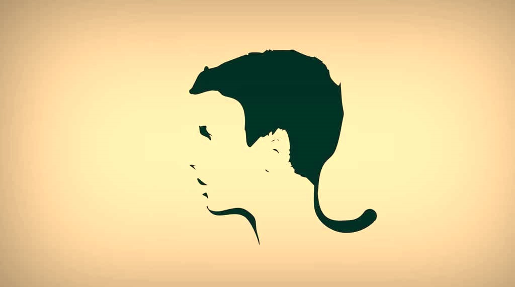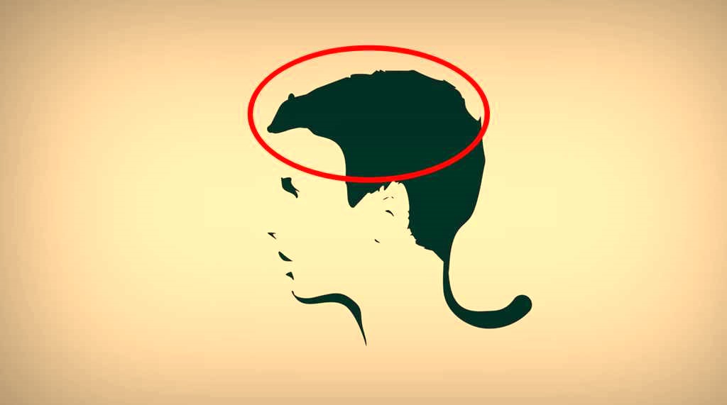 If you pay close attention, you will see that the male's hair is actually a big rat.
