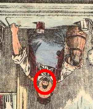 The second man can be spotted by turning the image upside down. He is present in the beard of the bartender.