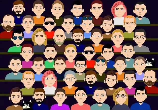 A group of faces can be seen in this picture.