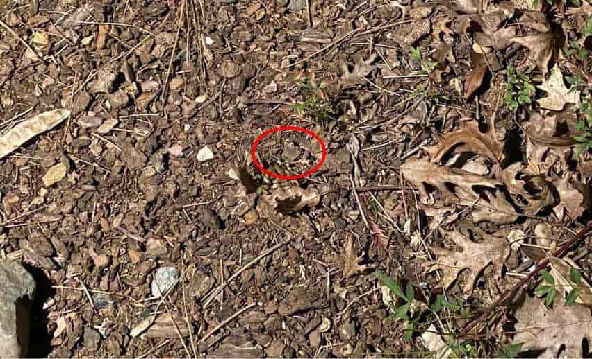The toad can be spotted a little above the centre of the image. It is marked with a circle, making it easier to identify.