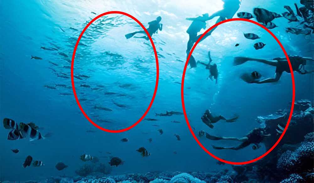 This tricky challenge depicts an underwater scene in which divers can be seen.