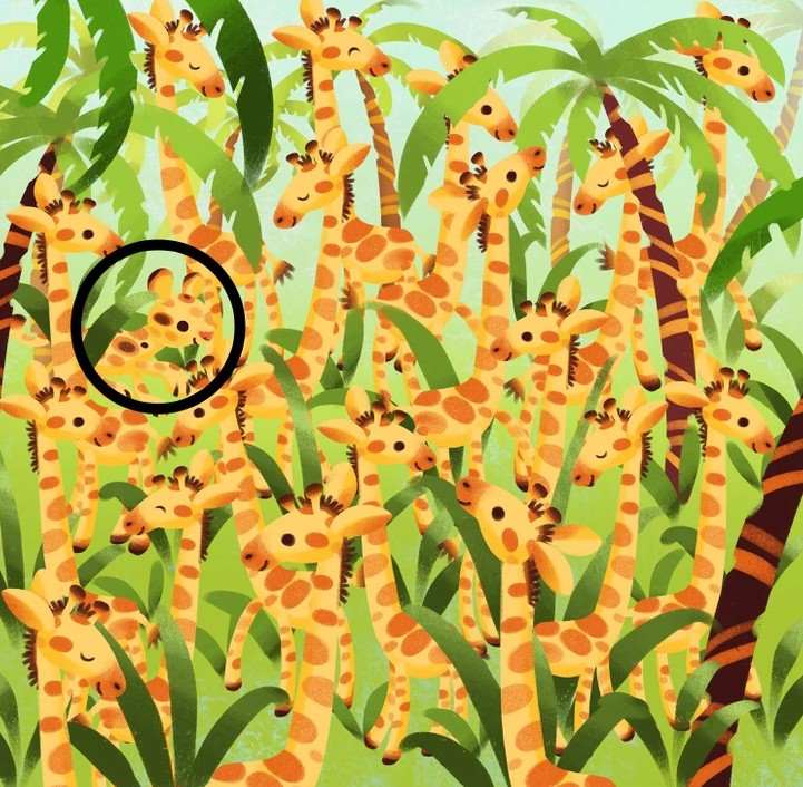 The above image is a brain teaser that has been designed for both adults and children. In this optical illusion, you can see a group of giraffes standing in the field. However, somewhere inside the group, a leopard is hiding. This fun puzzle challenges the viewers to find the hidden animal by hinting “Someone should tell the giraffes that there is a leopard hiding among them”.