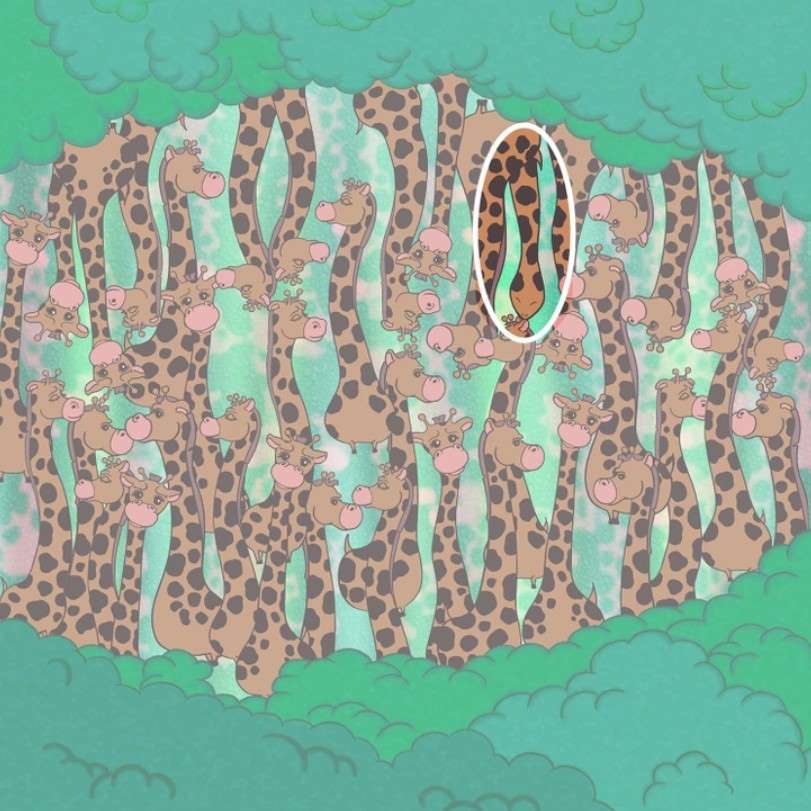 Optical Illusion for IQ Test: Can you spot the hidden Snake among the group of Giraffes in the picture?