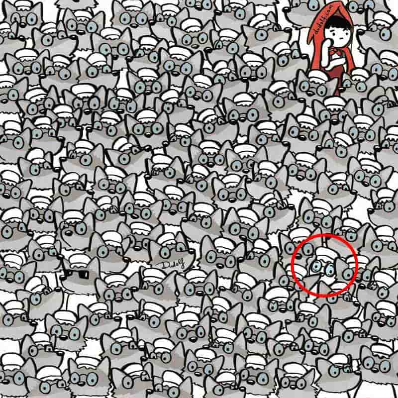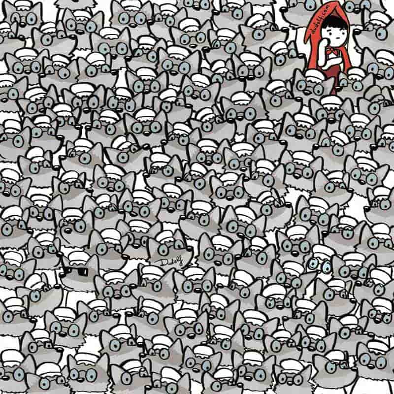 Optical Illusion IQ Test - Find Grandma Among Wolves