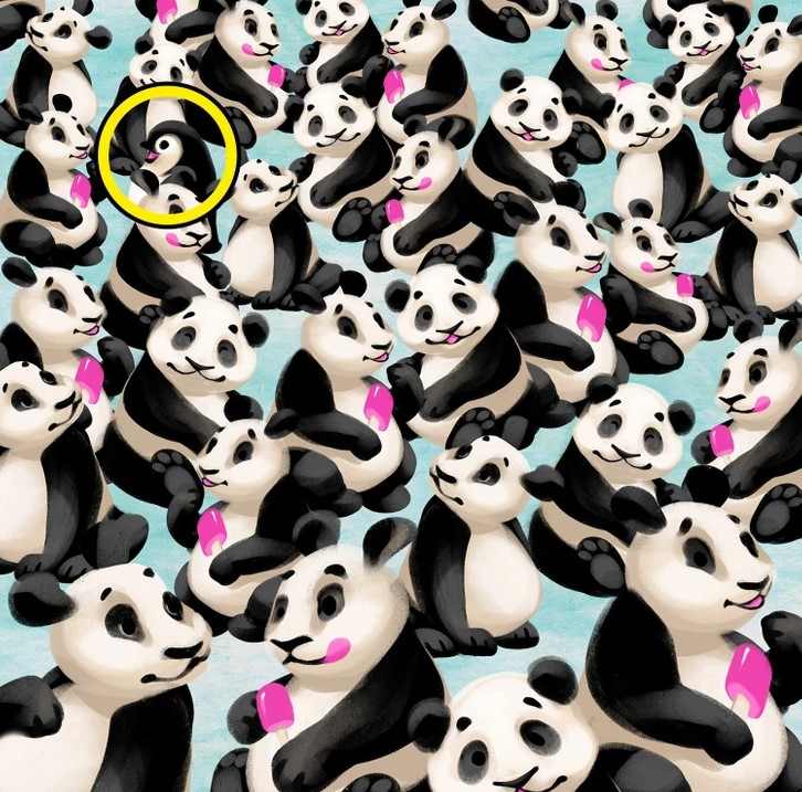 Optical Illusion to Test Your IQ: Can You Spot a Penguin Hidden Among the Pandas in Picture?