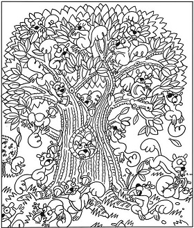 Take a close look at this optical illusion image and try to spot the hidden alligator inside the picture. It may appear too tricky to find the Alligator, but if you tilt the image upside down you will be able to spot the alligator near the center of the tree. The Alligator can be seen hidden under the tree branches with leaves and Squirrels sitting on them.