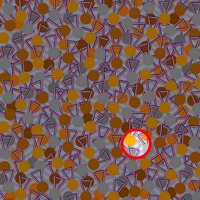 The illusion challenges the viewers to find the hidden hairband by asking “Among the gold, silver, and bronze medals, there’s a missing hair scrunchie. Find it before the competition heats up!” The puzzle makers also give you a hint that the scrunchie is similar in color to the light silver medals.