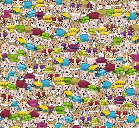 The above image is a tricky puzzle and has been designed for both adults and children as a Brain Teaser by the fashion website Stylight.co.uk. In this optical illusion, you can see a group of cute corgi dogs squashed in next to each other. However, somewhere inside the group, a Queen is hiding. The puzzle challenges the viewers by asking “Can YOU spot Her Majesty hiding among the corgi dogs?”