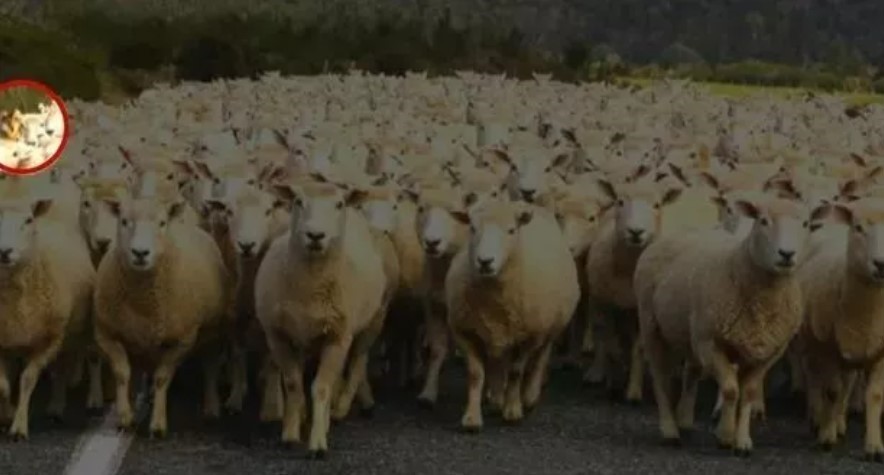 The above image is a tricky puzzle and has been designed for both adults and children as a brain teaser. In this viral optical illusion, you can see that a group of sheep has gathered on the road, and behind them, there is a grass field. However, somewhere inside the group, there is a wolf hiding. The puzzle challenges the viewers by asking them to find a wolf inside the flock of sheep.