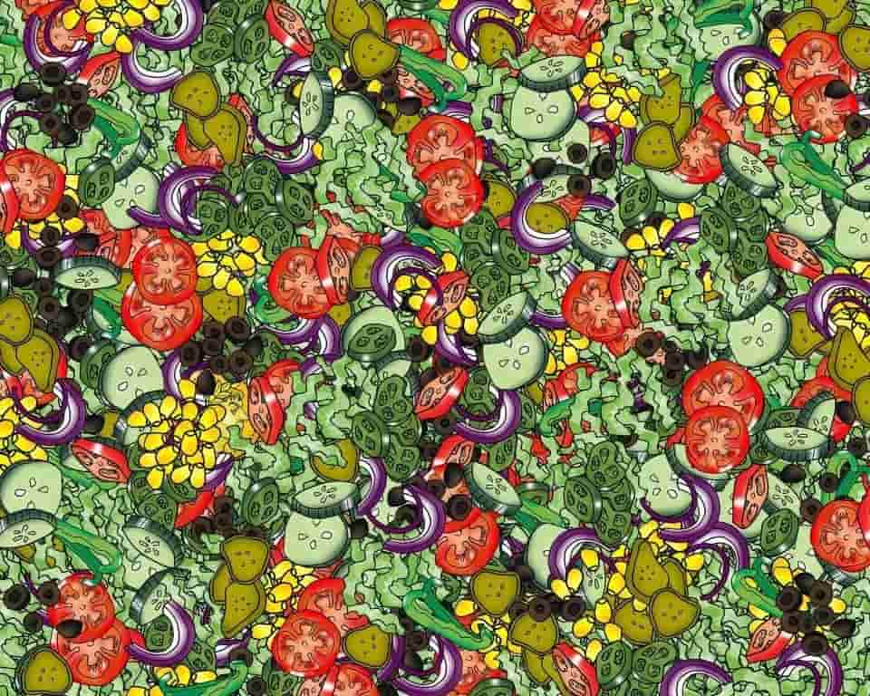 Hidden Face Optical Illusion - Find Emperor's Face in Salad in 8 Seconds