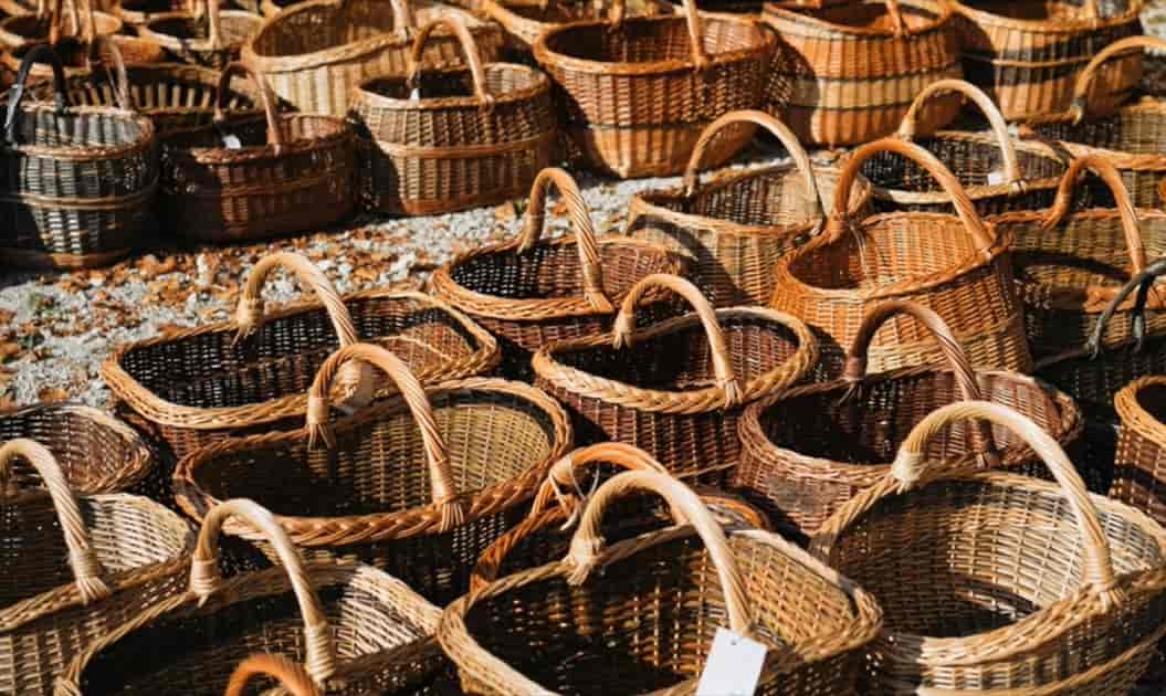 The moth can be spotted on the right side of the image, it is identical to the colour of baskets which makes it harder to detect it at the first glance.