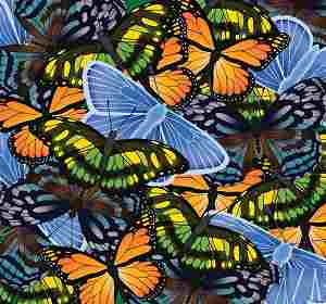 In the image, among these butterflies, there is a small caterpillar that has not yet received wings. See if you find this little crawling caterpillar among the colourful butterflies. Still, if you are not able to spot the butterflies then scroll down for a hint.