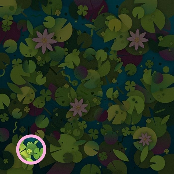 We asked you to spot the turtle hidden in the pond within 7 seconds. Here is it: