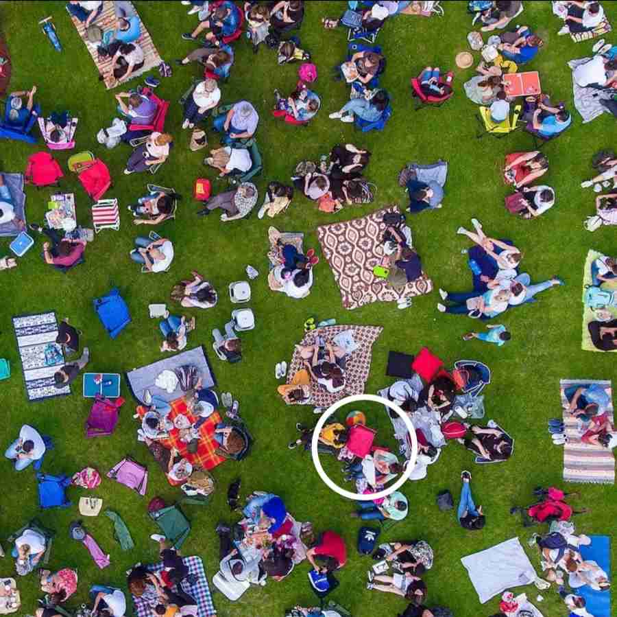 In this particular optical illusion, a crowd of people is shown sitting and enjoying a picnic spot.