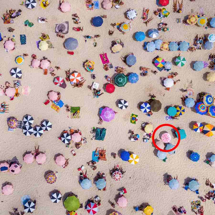 See, wasn’t this puzzle easy? You just had to be calm and look for the umbrella with no people underneath and a different pattern at the top.