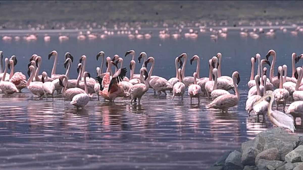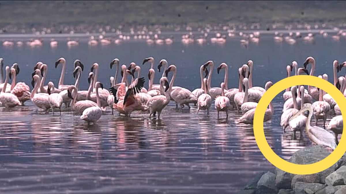 However, we are failing to find the hidden pelican in this huge herd of flamingos.