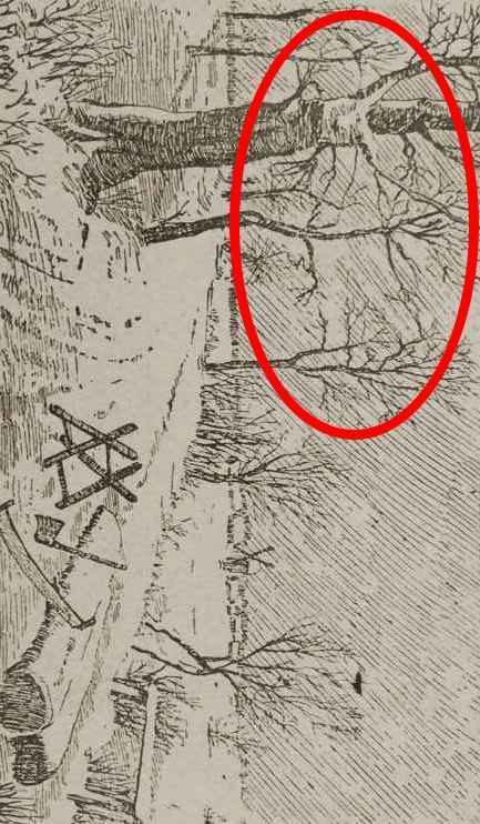 The lumberjack can be spotted on the tree by rotating the image 90 degrees to the right.