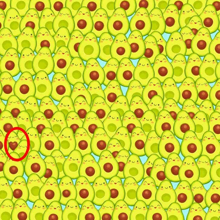 Optical Illusion to Test Your Vision: Find the Heart among Avocados in 5 Seconds