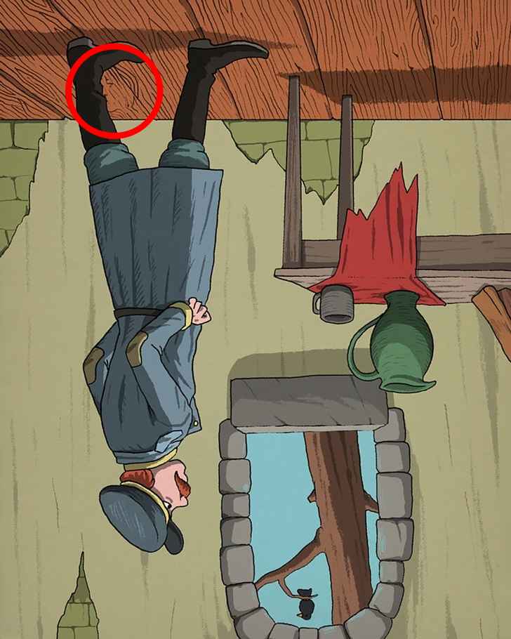 The convict can be spotted on the wooden floor by turning the image upside down. He is hiding under the right leg of the policeman.