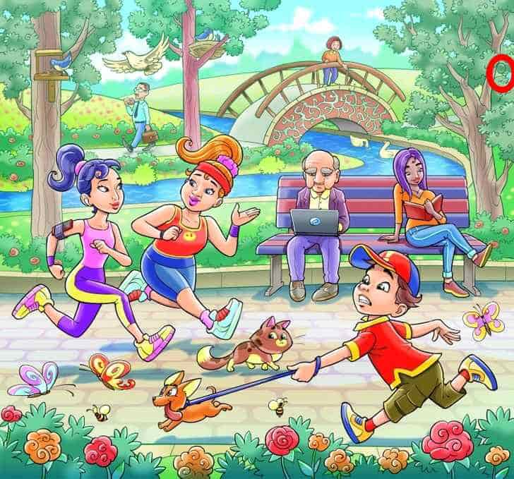 The challenge for the readers is to spot a snail hidden in the park in 7 seconds.