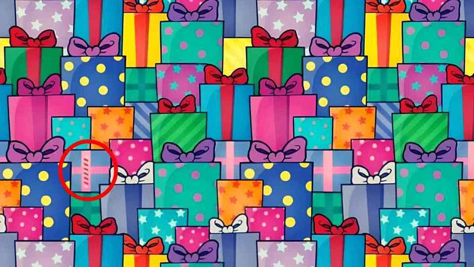 The challenge for the readers here is to spot the candy cane among the gift boxes in 6 seconds.