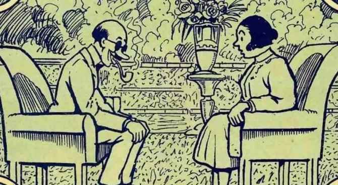 The above shared image depicts a room scene where a lady and a gentleman can be seen having a conversation.