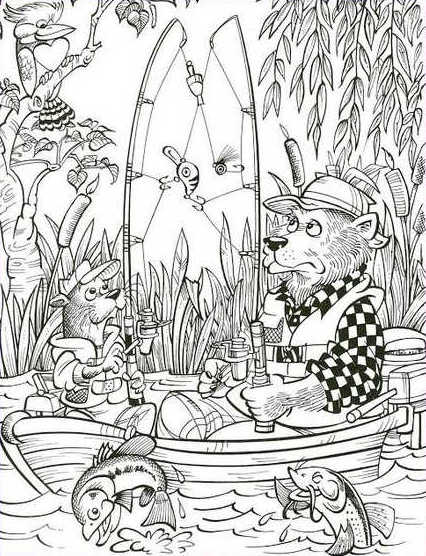 In the image shared above, a bear, an owl, and a cat can be seen fishing.