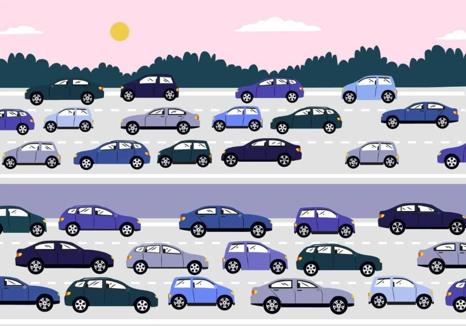 The direction of the moving cars on the road creates an illusion of sorts in the eyes and minds of the users.