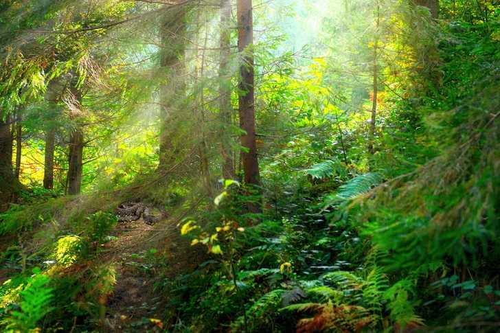 A snake is hiding in plain sight in this forest picture. Your task is to spot the snake within 6 seconds.