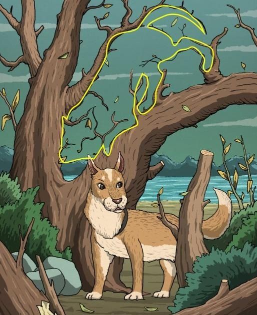 In this optical illusion image, we can see there is a dog who is standing near an old tree which doesn’t have many leaves left. The challenge is to find a hidden cat in this image.
