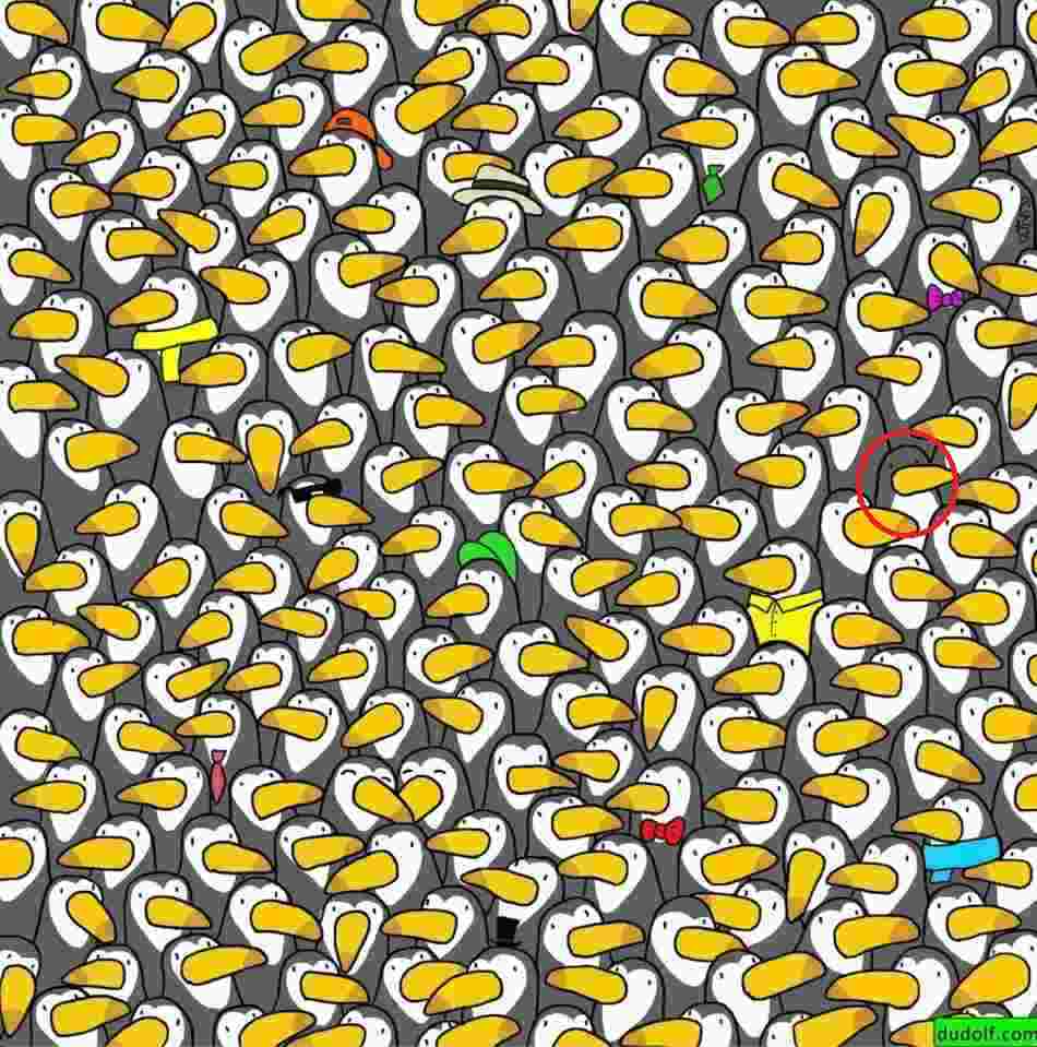 Optical Illusion - Find the Hidden Penguin in 13 Seconds