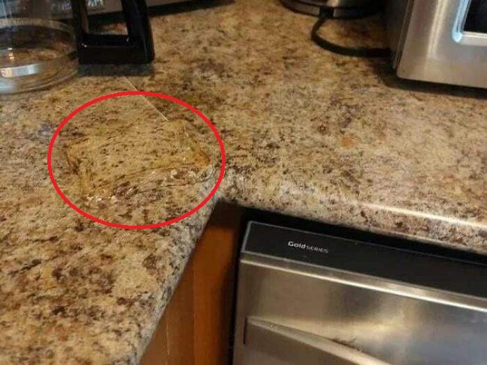 The sandwich is right there in the middle of the picture and it has blended with the marble countertop making it indistinguishable.