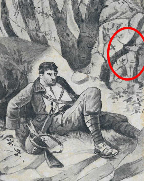 Hidden among the rocks is a ferocious wild dog that can bite the soldier at any time.