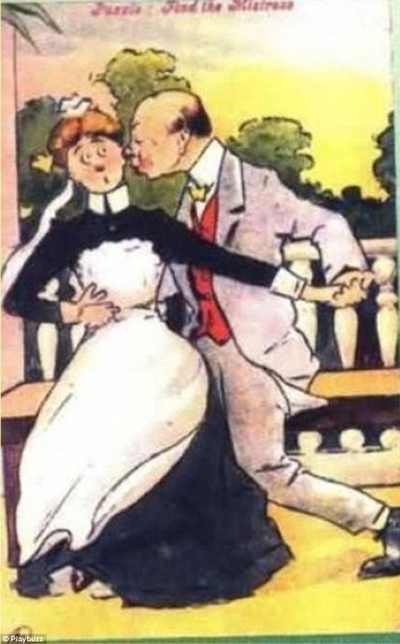As you can see from the image below, the old man in the picture is cheating on his wife. The man stole a kiss from the house help behind his wife’s back. He thought that he would get away with it. However, what he did not know was that his wife was watching his every move and had caught him cheating on her red-handed. The cheating man’s wife is hidden in plain sight. Can you find her?