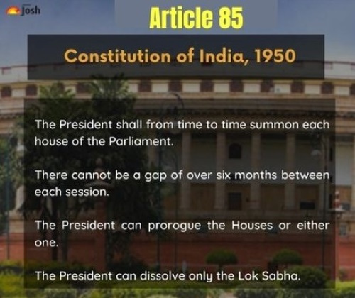 | 85(2) | The President has the authority to prorogue or dissolve the Lok Sabha when required. |
