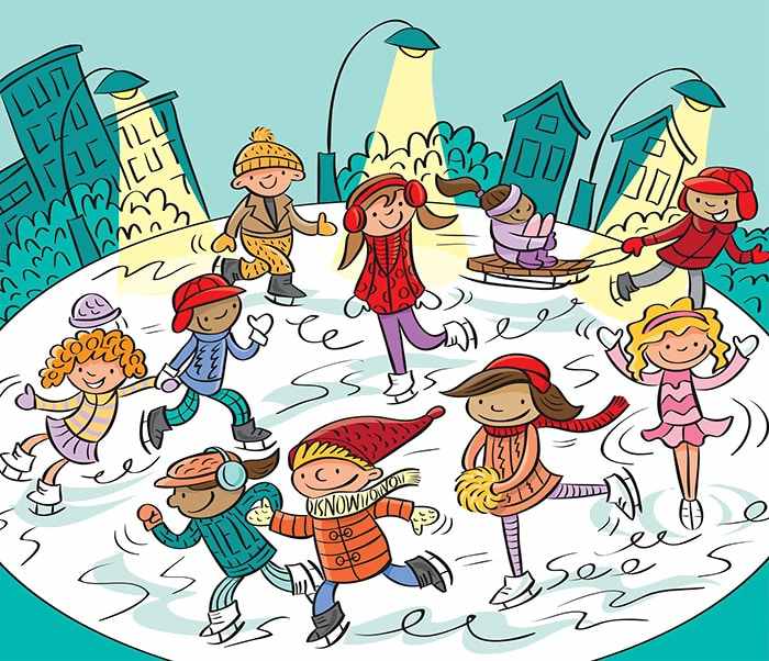 The image above depicts an ice skating picture where kids are enjoying their time skating on the ice.