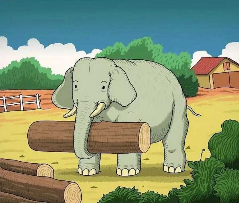 The hidden horse can be spotted in the space between the bush and the elephant’s tail.