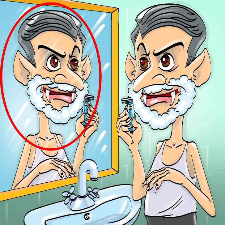 In the image shared above, a vampire can be seen shaving in front of a mirror.