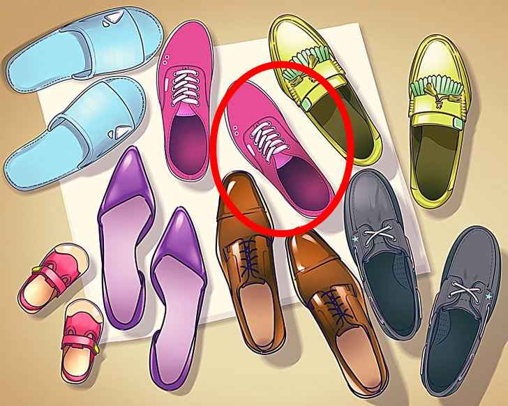 The mistake in the picture is that the pink shoe has two left leg pairs.
