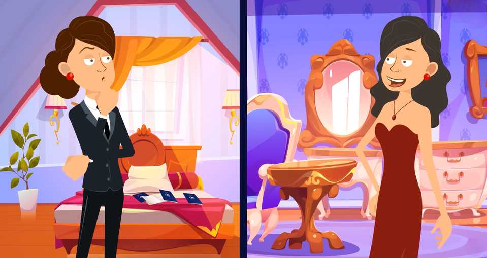 The solution to this picture puzzle is that the woman on the left is the thief, you can see multiple passports lying on the bed and the curtains on the window are lifted suggesting that she is the thief and is trying to escape.