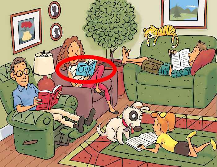 The hidden word “story” can be spotted on the book that the woman is reading.